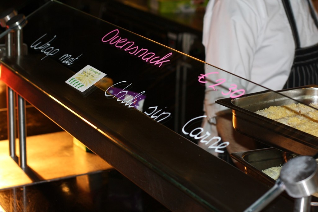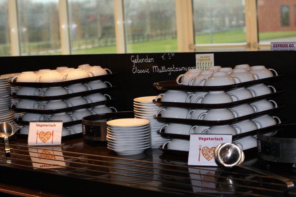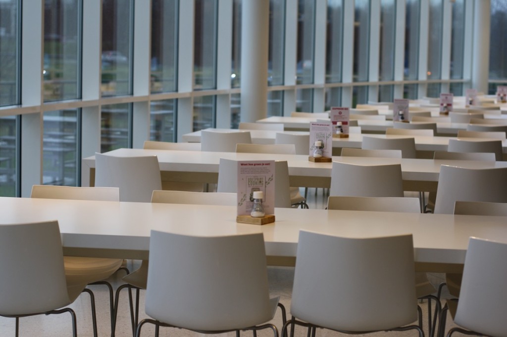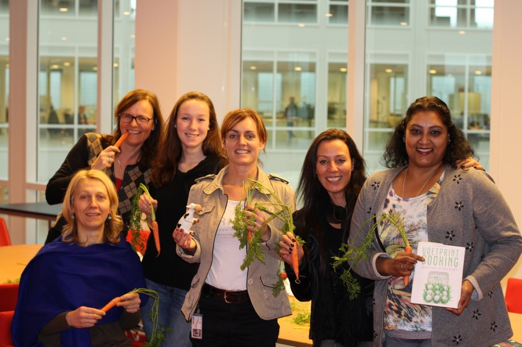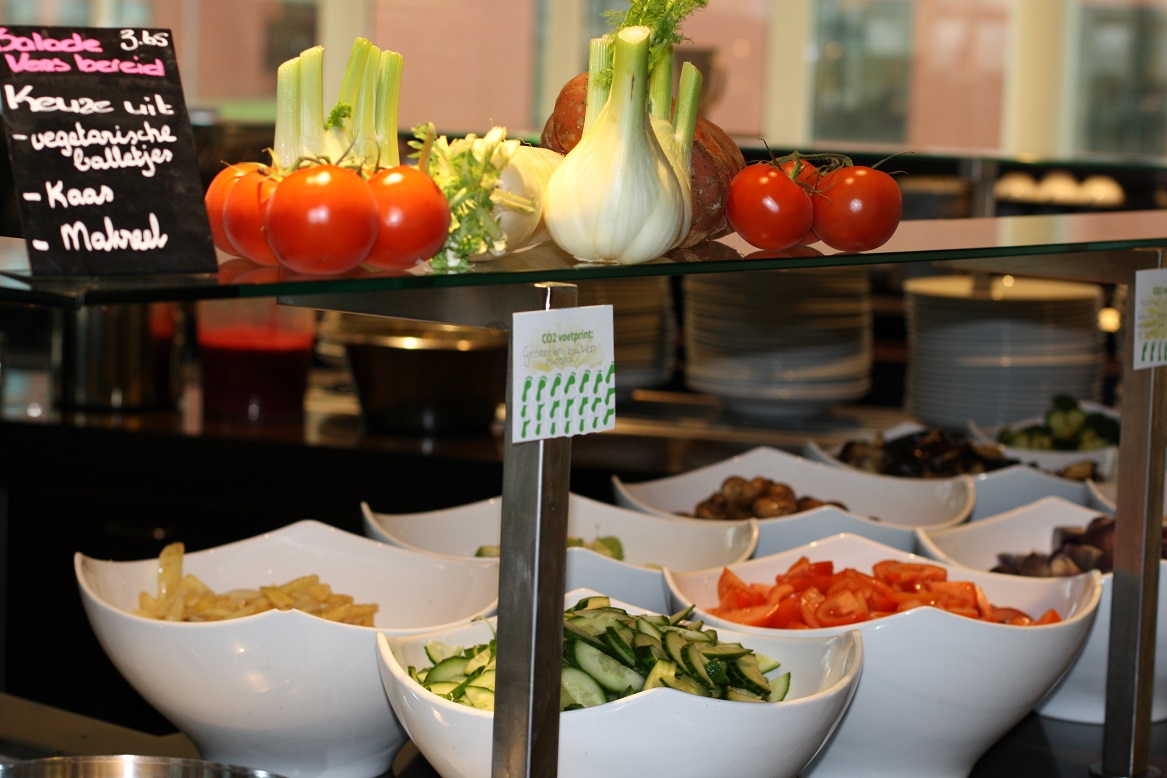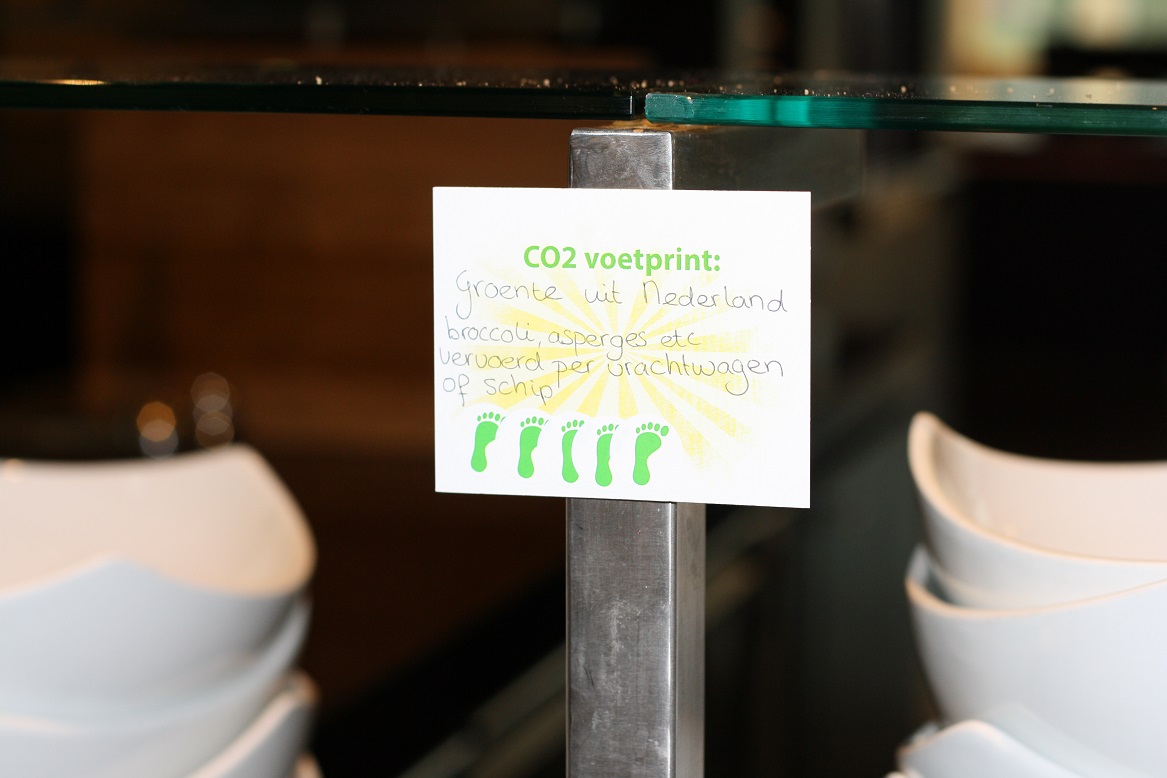 Hier een fotoverslag van de CO2-dieetweek (12 tot 16 jan) bij een grote Nederlandse energiemaatschappij. Deze week worden er in de bedrijfsrestaurants van de energiemaatschappij alleen CO2-lagere gerechten geserveerd. Denk daarbij aan wrap “duurzame vis”, chili sin carne, GaramMasala kikkererwten&crunchy papadum, no waste soep etc. De “CO2-dieet week” is een samenwerking van VoetprintCooking® en Hutten Catering. Ik ben zowel Hutten als de energie-maatschappij zeer dankbaar dat ze hun tijd in dit concept hebben gestoken en op die manier zo’n 700 medewerkers helpen bewust te worden van de CO2-uitstoot van ons voedsel! (30% VAN ONZE VEEL TE GROTE VOETAFDRUK)