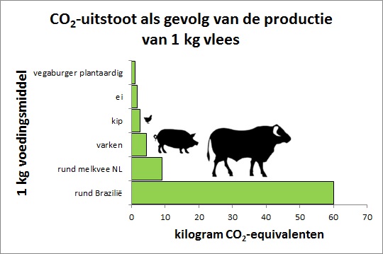 Het ligt er maar aan welke vis: de co2-uitstoot bij de productie van 1 kg haring of makreel is lager dan voor kipfilet. De uitstoot bij productie van schol en garnalen is weer minstens 2 maal hoger dan kip.