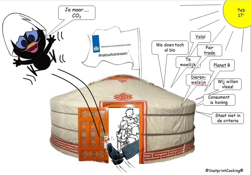 VoetprintCooking® praat mee in een Mongoolse Yurt op uitnodiging van ministerie van EZ in het kader van de Natuurkaravaan: thema op 7 maart Natuur&Consumeren. De uitkomsten gaan naar de staatssecretaris. Aan mij de taak om de ecologische voetafdruk van ons voedsel te benadrukken!