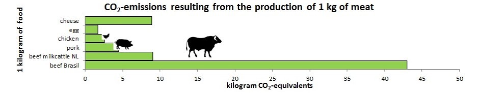 If you don’t eat meat because of environmental impact, then you better not eat cheese. In order to make cheese an equal amount of fossile energy is needed as it is for meat. 1 kilo chicken costs for example 86 MJ indirect energy, while 1 kilo of young cheese costs 71.5 MJ costs and old cheese 89.7 MJ.