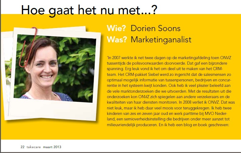 Leuk om als oud-collega in het ONVZ-personeelsblad te staan! Dank aan Karin Matton, zij werkt op het ONVZ-Zorgservicebureau en verder blogt ze over kinderen met overgewicht; Sana Vivendi >>.