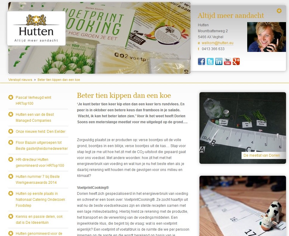 In oktober 2014 is onderstaand bericht verschenen op de website van Hutten Catering. Dit naar aanleiding van de samenwerking tussen Hutten Catering en VoetprintCooking®. Lees meer >>