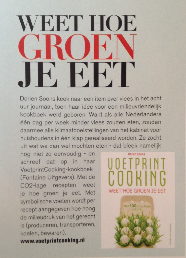 In de Lente 2015 van LEVEN!magazine is een item over VoetprintCooking® opgenomen. Leuk! LEVEN! magazine is een publiekstijdschrift, gericht op een bepaalde regio van ons land, ook wel een stadsglossy genoemd. Met drie edities: de regio’s Den Haag, Leiden en Utrecht. Het is een hoogwaardige uitgave met veel aandacht en liefde gemaakt en oog voor detail zowel voor de inhoudelijke kant als qua uitvoering, dienstverlening en distributie.