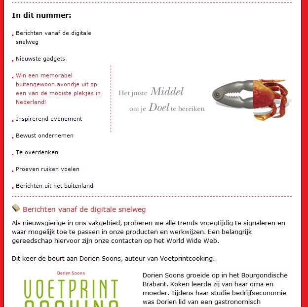 In april 2013 had ik de eer om in de nieuwsbrief van Grand Catering (volleding klimaatneutraal opererende partycateraar >>) te verschijnen. Deze cateraar maakt gebruik van eerlijke, seizoensgebonden producten en ingrediënten en gaat efficiënt om met transportbewegingen en energieverbruik om bij te dragen aan een beter klimaat.