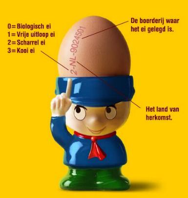 [2] Milieu Centraal heeft de rangorde aangebracht, van meest naar minst diervriendelijk (ten opzichte van eieren die alleen aan de wettelijke eisen voldoen)